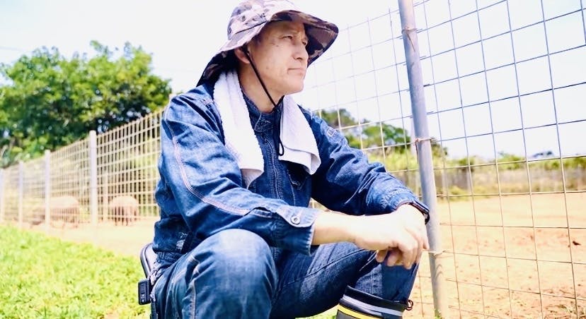 私が牧場を始めたのは15年前。それまでは不動産事業を営んでいました。元々、食べる事が大好きで農業にとても興味があり養鶏を始めたいと土地を探し始めた時に出会ったのが猪豚でした。