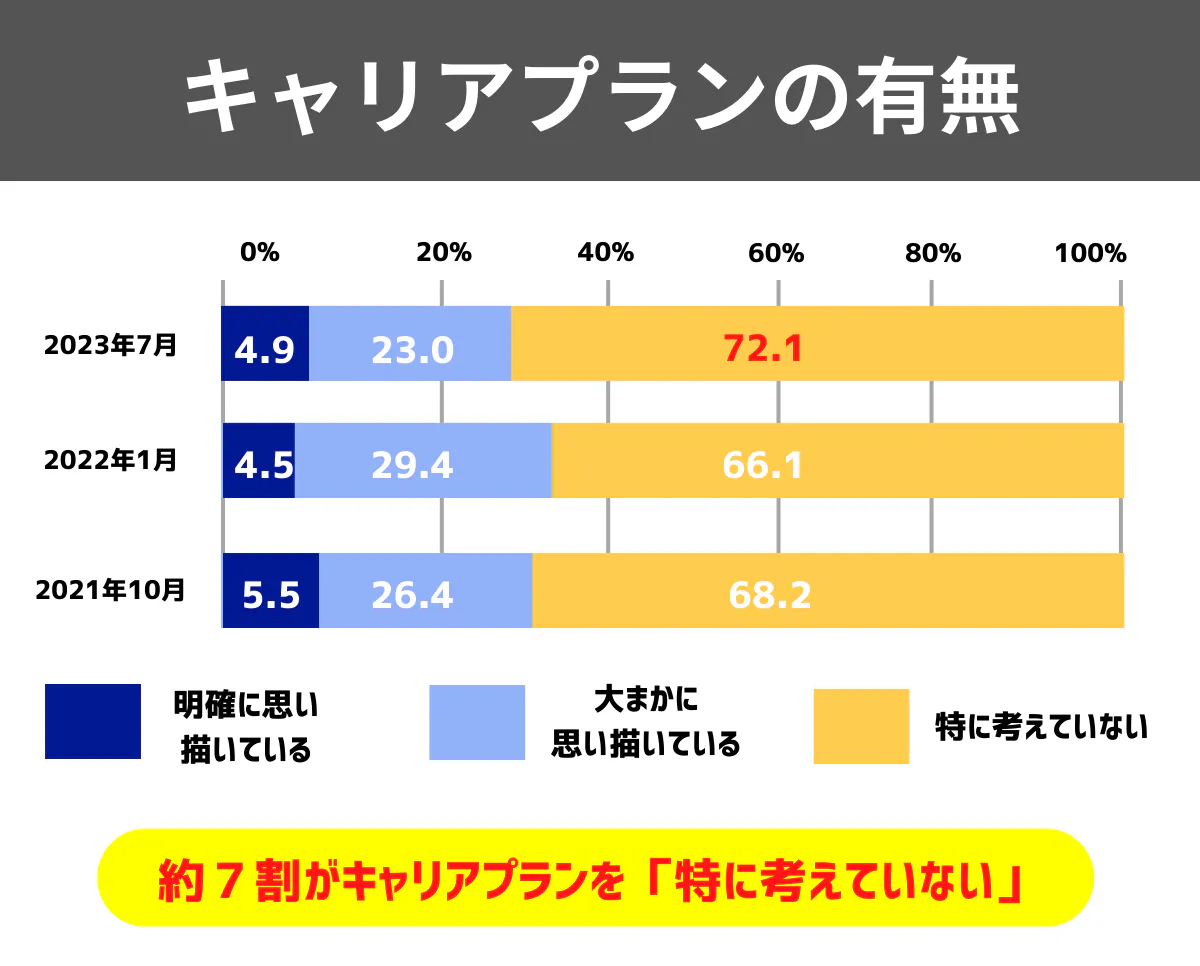 こういった「モヤモヤ」を感じている人は、私だけに限りません。例えば、公益財団法人がおこなった「第13回 働く人の意識調査」の中では、キャリアプランの有無について次の結果が出ています。