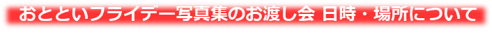 昨年末に発表の追加プラン「おとといフライデー写真集」のお渡し会のに日時・場所についてご報告させていただきます。