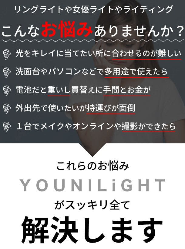 オンラインや撮影、誰もがしていますよね。メイクや身だしなみは、人と会うときなど、自分の気分を左右します。これらってライティングで全く違ってきます。こんな現代に【YOUNILiGHT(ユーニライト)】はピッタリな贈り物かと。友人や仕事仲間、ご家族へのプレゼントされてはいかがでしょうか。