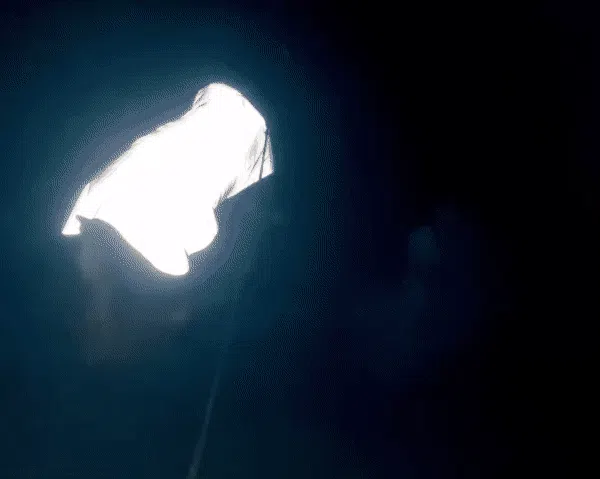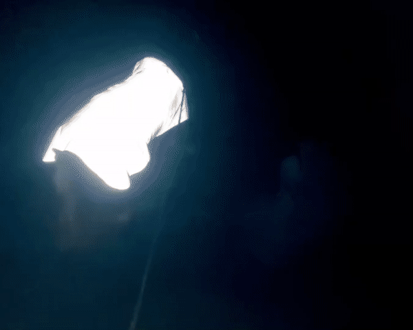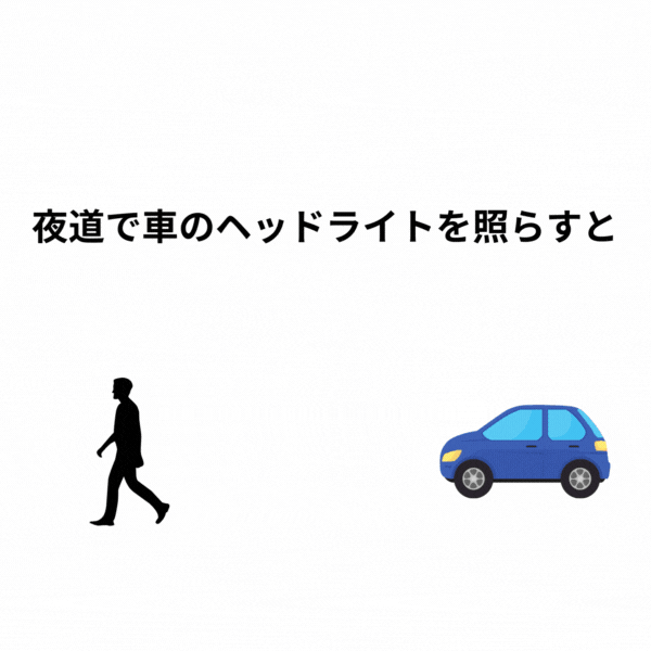 実験:暗い夜道で約50m先の犬に自動車のスモールライトを当てました