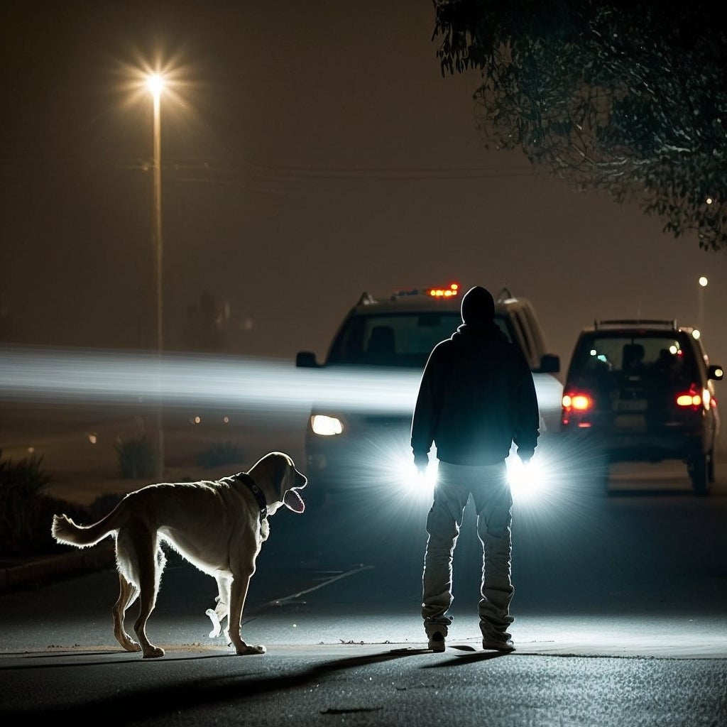 突然、犬が暗闇から飛び出してきたら。。。老人、子供が暗闇で犬に遭遇したら、非常に危険です。