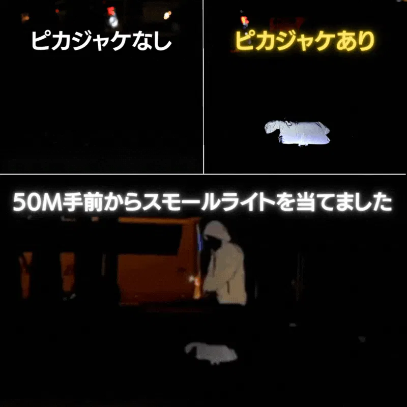 ピカジャケは表面積の大きい反射材なので、存在感を強くアピールできます。