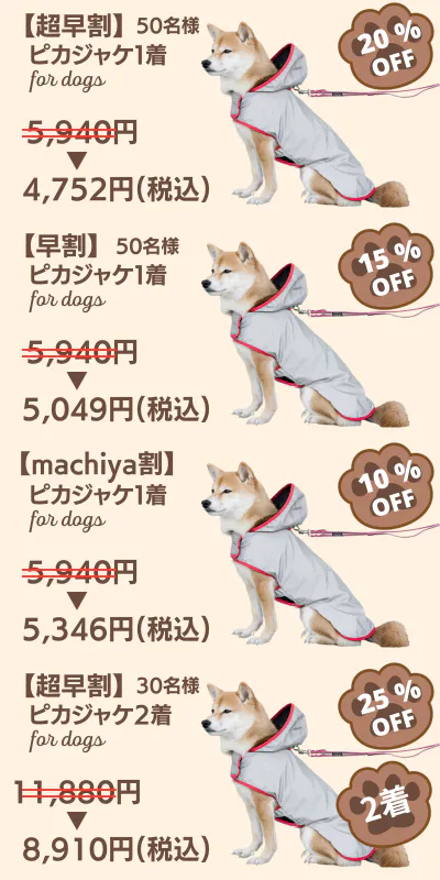 今回はピカジャケご愛用者様からのアイデアを参考に犬用ピカジャケ、ピカジャケ for dogsを開発しました。