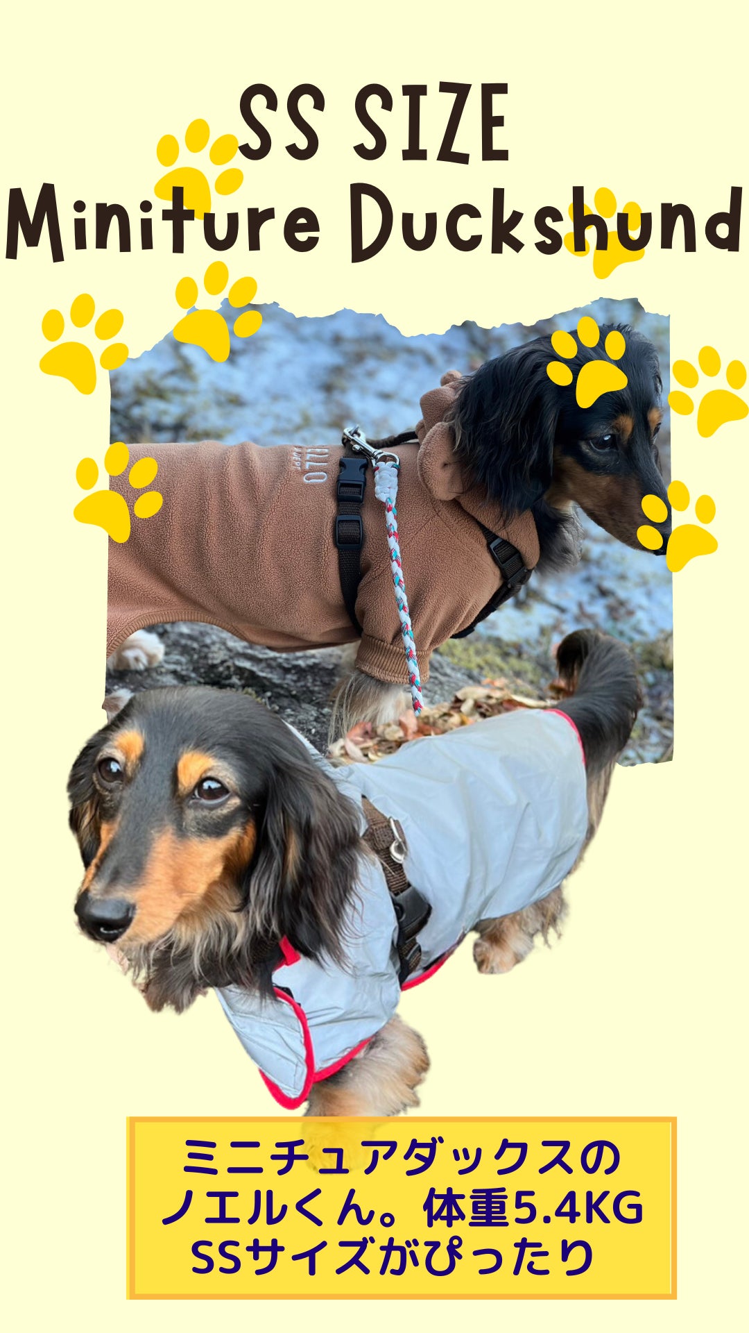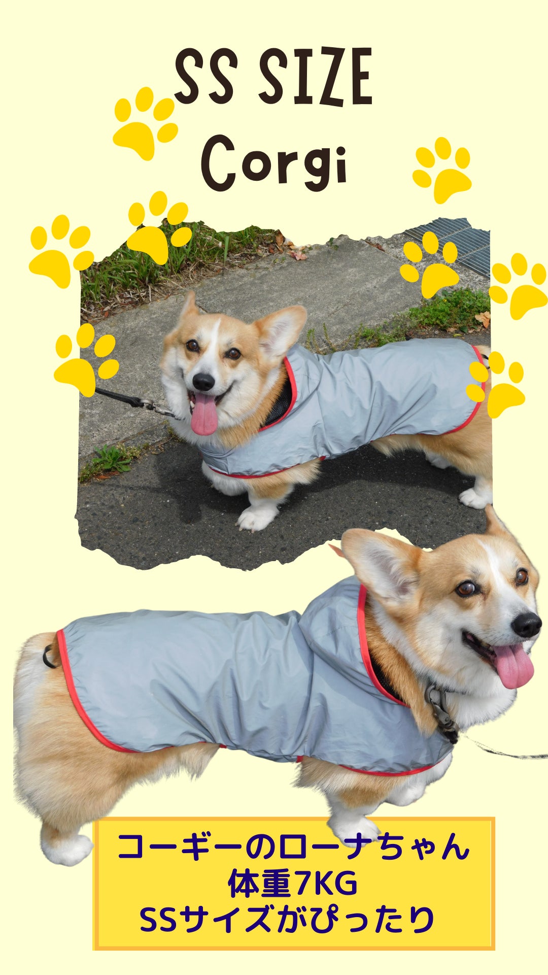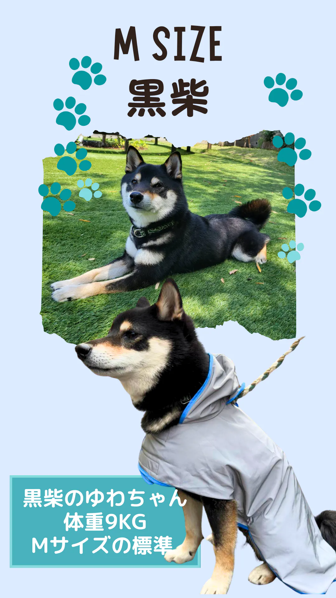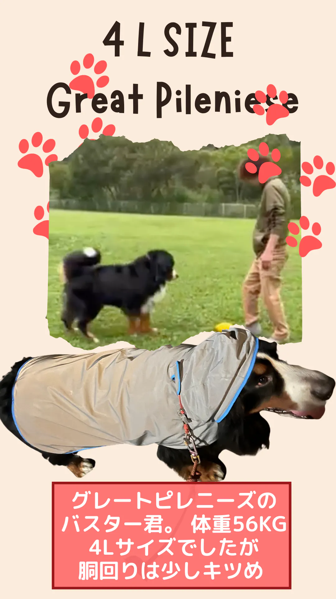 A:ワンちゃん計測は難しく、体型・種別・毛量によっても差が生じます。ピカジャケ for dogsは突然の雨にも対応できるよう長めの作りです。首周り、胴回りを優先したサイズをご選択ください。