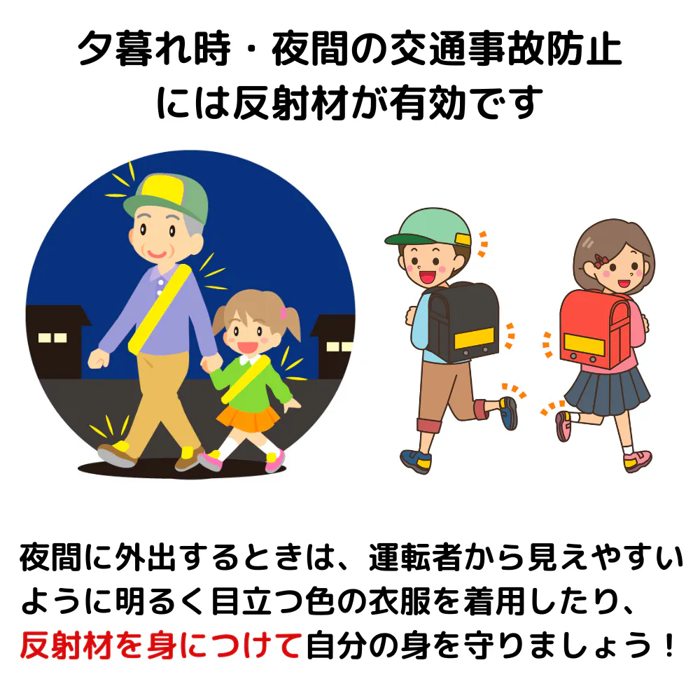 視認性を高めるには、歩行者は反射材を身につけて、存在を周りに知らせることで悲しい事故の防止に役立ちます!