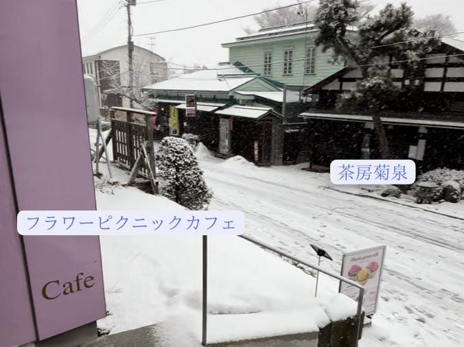 実は、運営しているフラワーピクニックカフェは『茶房菊泉』の目の前に位置しております。