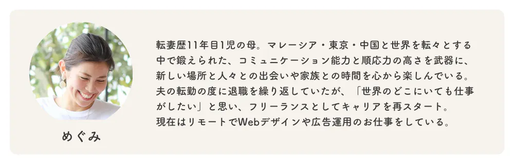 転勤妻サポートBOOKが、一人でも多くの人が前向きに転勤生活を送るための心の拠り所になり、充実した人生を叶えるきっかけになると嬉しいです。