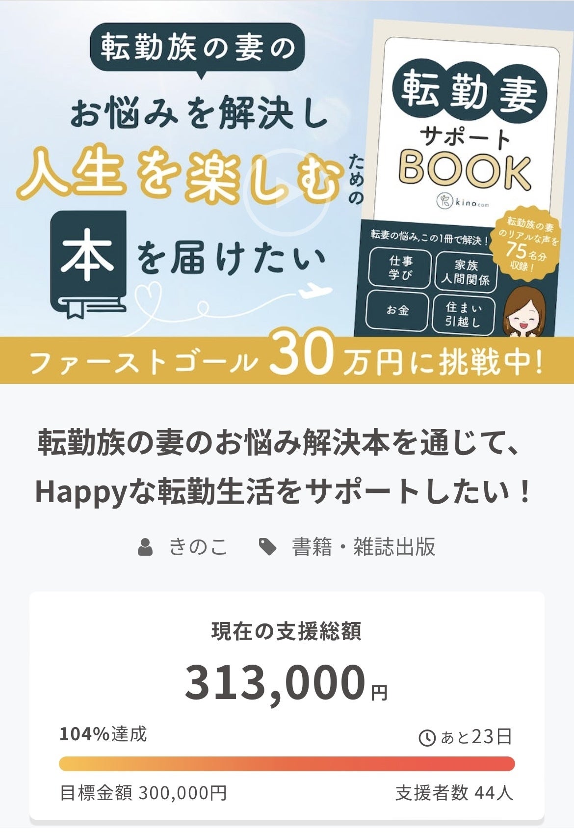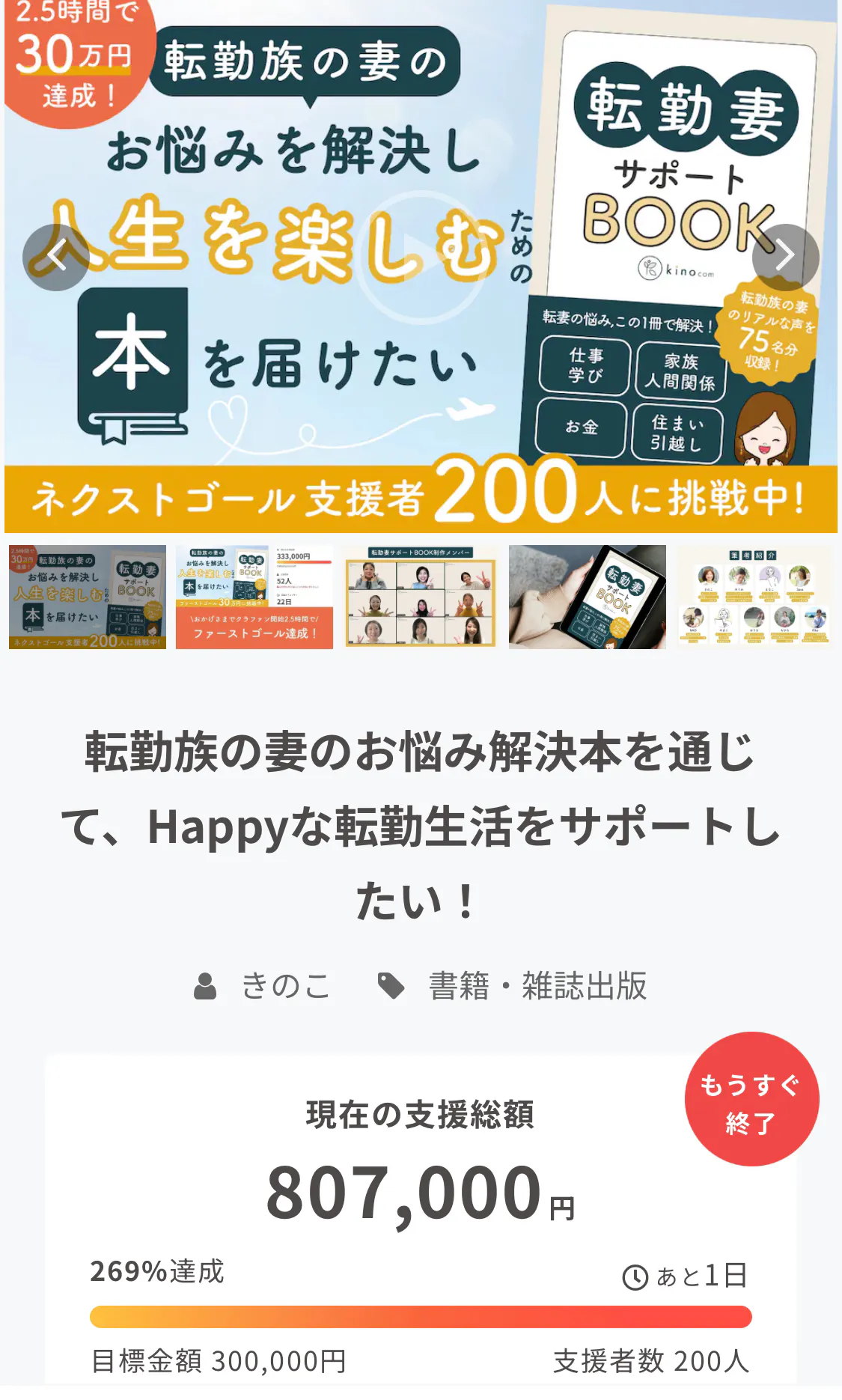 さらに多くの方々に「転勤妻サポートBOOK」を届けるべく、ネクストゴール支援者200人にチャレンジいたします!