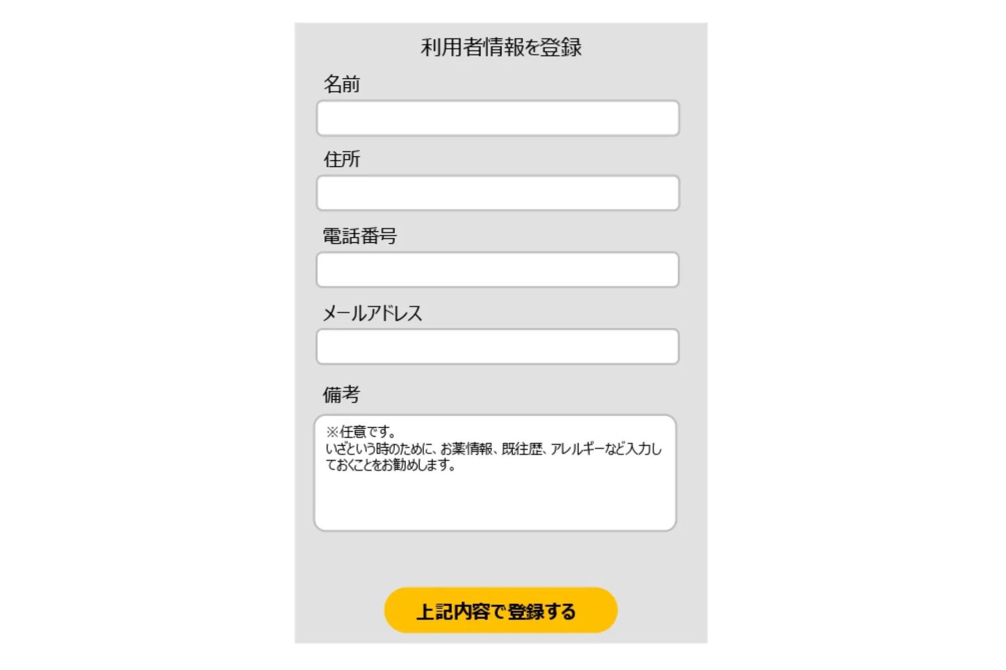 名前シールは基本、書けるのは名前と、書けて電話番号まで。でも【ココ!ヨミトリーナ】なら、名前以外の情報も入力可能!専用サイトにアクセスして、名前や電話番号はもちろん、住所やメールアドレス、備考欄にお薬情報や既往歴、アレルギーなどの情報を、いざという時のために入力しておくことができます。