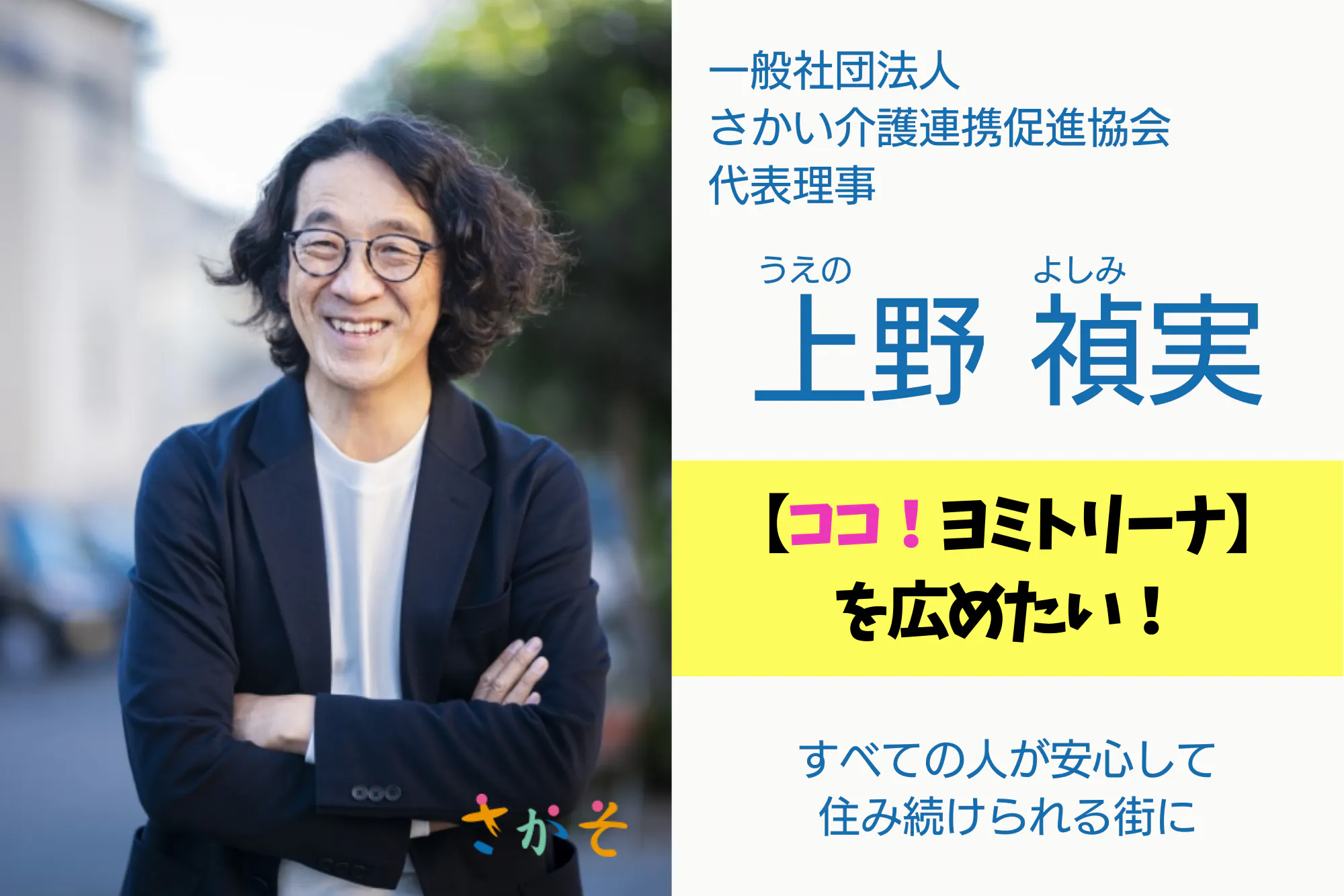 大阪府堺市にある、一般社団法人さかい介護連携促進協会、通称『さかそ』にて代表理事を務めております、上野禎実と申します。