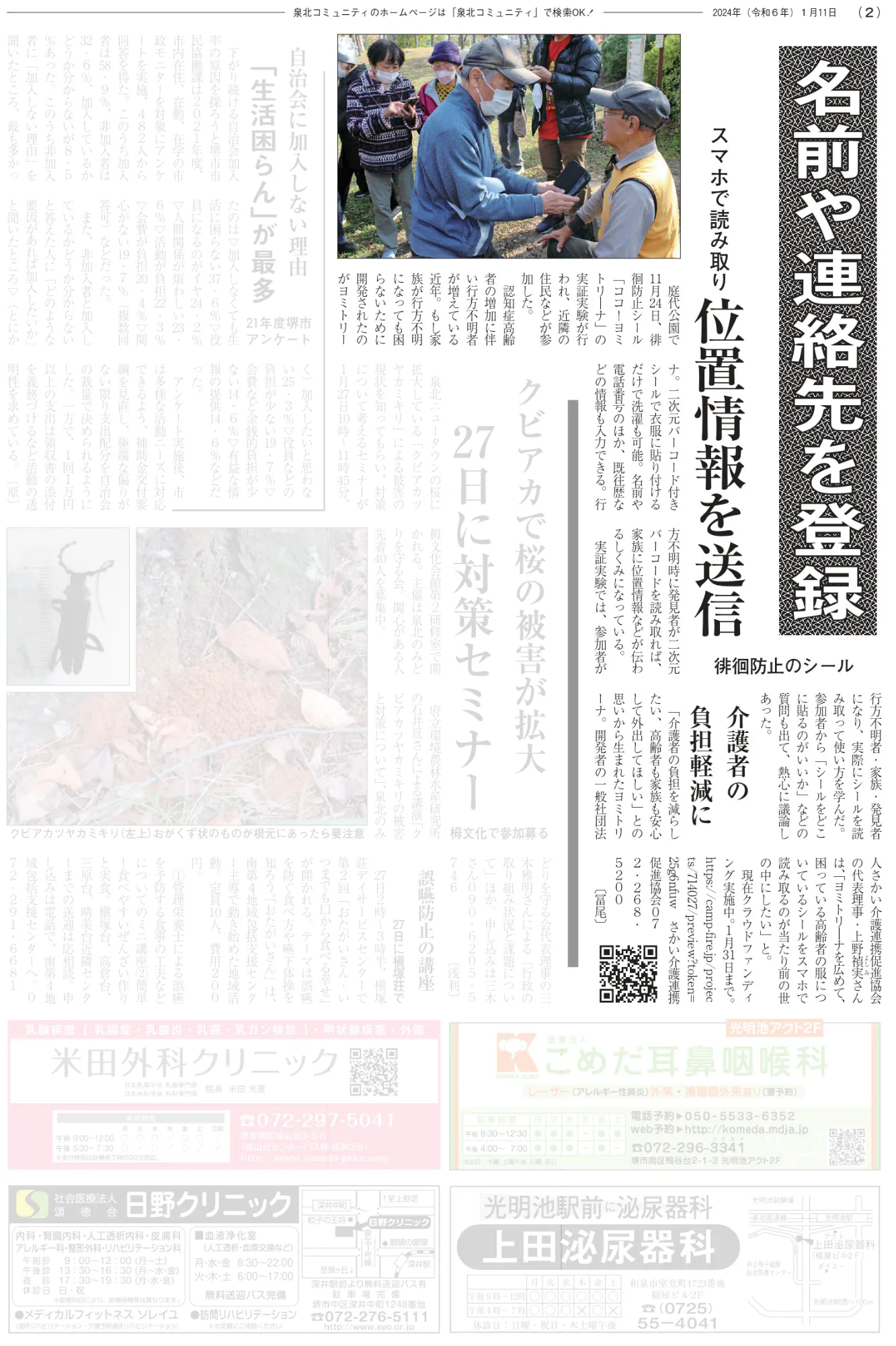 そしてその様子が、泉北コミュニティという地域情報サイトの1月11日号トップに掲載されました!