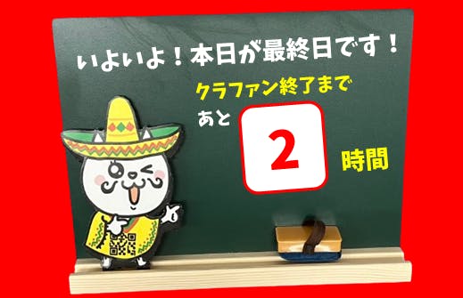 クラファン終了まで、いよいよあと「2」時間を切りました!