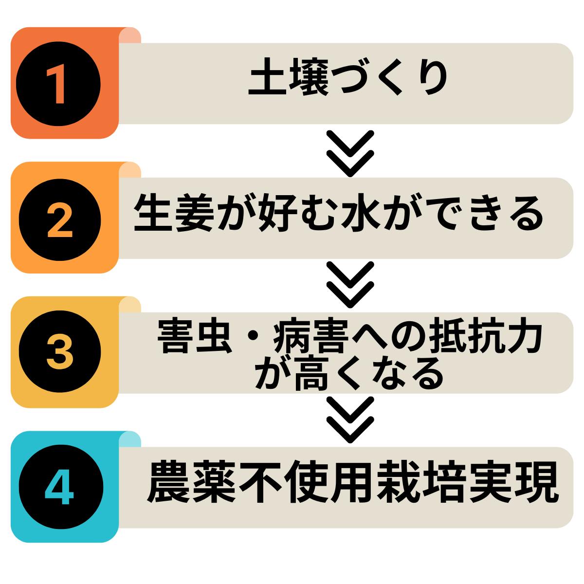土作りこそが最も重要であり、その土壌のからの水作りで生姜は本来の生命力を発揮し生育します。