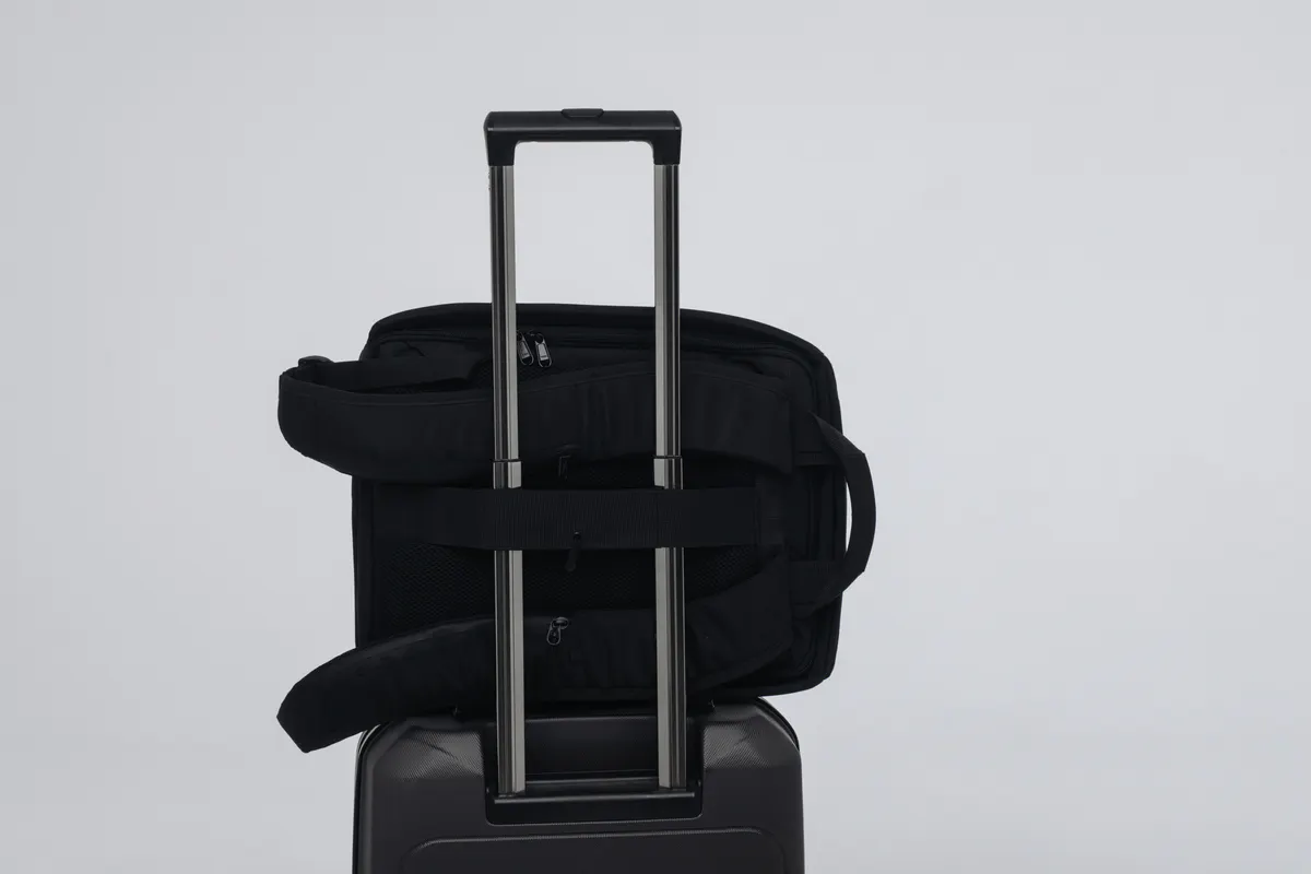 様々なシーンでの持ち運びを叶えるためのハンドルやスーツケース利用を想定したラゲッジストラップももちろん備えています!