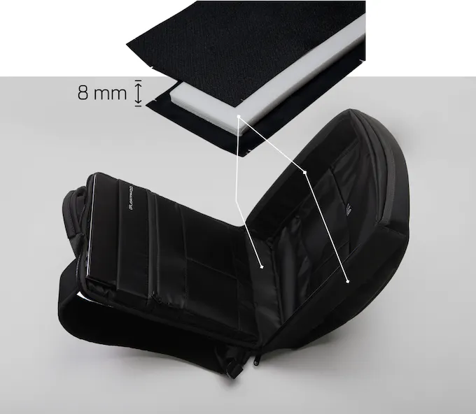 バックパックの背面にも、厚さ4mmのクッションフォームを配備。
