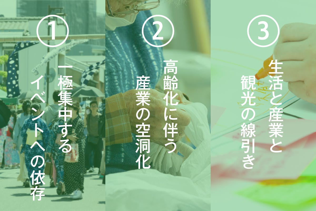 私たちが有松で活動する中で直面する課題は、大きく分けると3つあります。