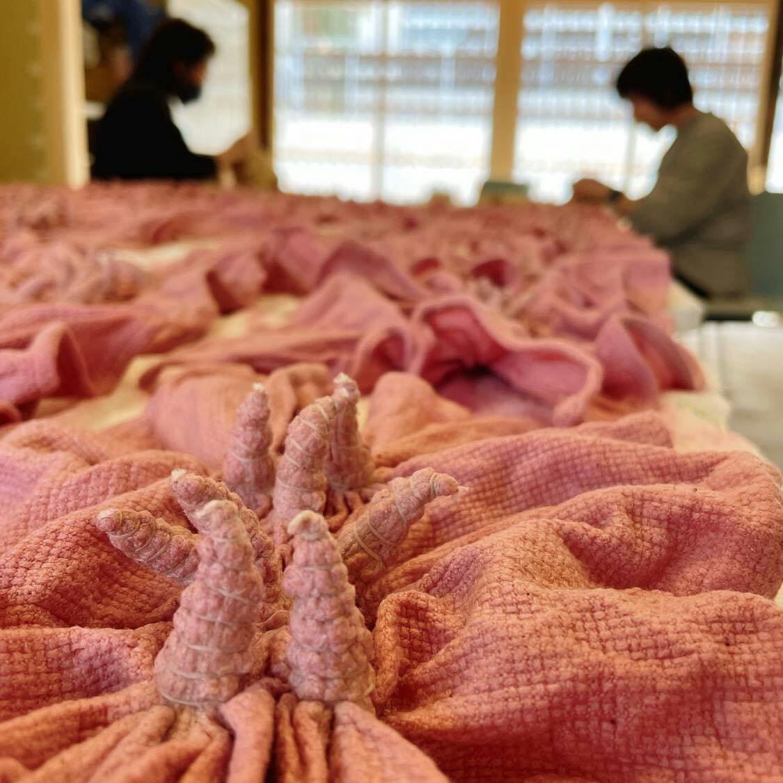 2024/05/19 09:39この度は、私たちのプロジェクトを支援していただき、誠にありがとうございます。ご支援いただいたリターンのうち、【オリジナル手ぬぐい】と【絞りのランチョンマット】について、昨日、ご支援いただいたみなさまのもとに発送いたしました。【オリジナル手ぬぐい】は、このクラファンでも活用イメージを描いてくれた奥村ちひさんによるイラストをベースに、moss ARIMATSUのロゴをちりばめたデザインとなっております。moss ARIMATSUの玄関先でも、掛け軸のようにして飾っています。また、【絞りのランチョンマット】については、多くの方に協力いただき、このmoss ARIMATSUで染色作業を行いました。今回、地元有松のカフェギャラリー六弦とコットンさんから分けていただいた抽出後のコーヒーや、アリマツーケットにも出店いただいたことのあるベジタリ菜さんのローゼルを用いて、一つひとつ、染めていきました。まずは、絞り作業をするための目印となっていた青花を落とす作業からスタート豆乳液に漬けることで、木綿でも染まりやすい状態にします。抽出後の珈琲を煮だして染料をつくり、生地を染めました。ローゼルも、珈琲と同様に煮だした染料に漬けて染め、やさしいピンク色になりました。今回、ランチョンマットをご使用いただく前に、以下の手順で草木染特有のお手入れをしていただくことをおすすめします。 1. お手元に届いたランチョンマットは、最初に優しく手洗いしてください。冷たいまたはぬるま湯を使用し、中性洗剤を少量加えると良いです。 2. 色落ちする可能性がありますので、他の衣類や布製品とは別に洗ってください。 3. 洗った後は、形を整えて平らな場所に広げ、自然乾燥させてください。直射日光は避け、風通しの良い場所で陰干しすると色持ちが良くなります。 4. アイロンをかける場合は、優しくプレスしてください。これらの手順により、ランチョンマットの美しさと色彩が長持ちします。手作りの温もりを感じていただけることを願っています。どうぞ大切にお使いください。 もっと見る