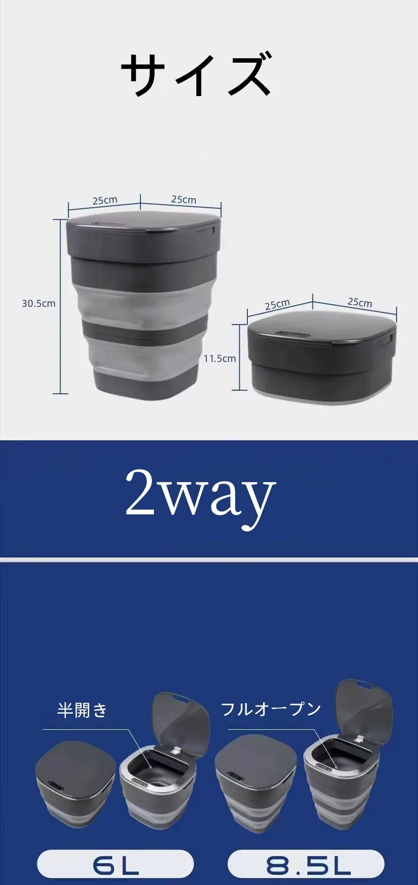 今回、私はセンサー付きの折りたたみ式のゴミ箱をずっと探している中でこの商品を見つけました。センサーが手や物を感知して自動でフタが開閉するだけでなく、足でのキックした時の振動だけでも自動でフタが開閉することで、 手が汚れている時や塞がっている時に便利で、何より衛生的に使用できるところが良いと思いました。 かつスタイリッシュな見た目で、隠すのではなくインテリアの邪魔にならないデザインもおすすめです。