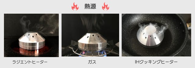 【Multi Smoker】にチップを入れて熱を加えるだけで手軽に冷燻料理。熱源は電気コンロ、IH、そしてガスコンロなど。
