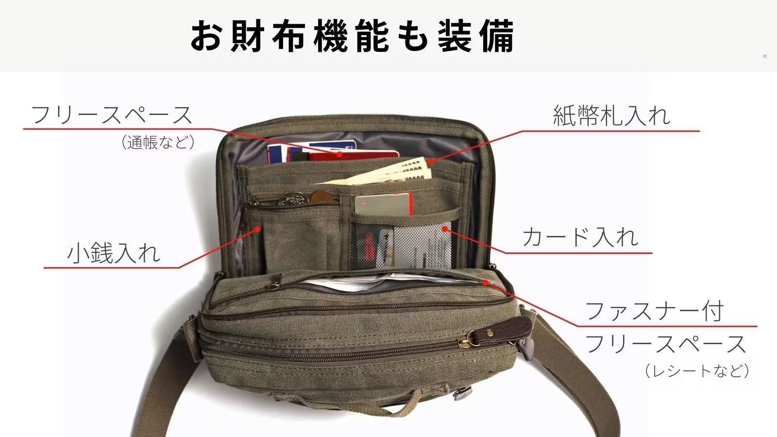 2層目の多収納ポケットは、お財布として使える仕様になっています!