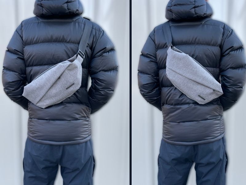 右肩にかけたバッグを外し、左肩に。こんなスタイル変更も一瞬でできます。