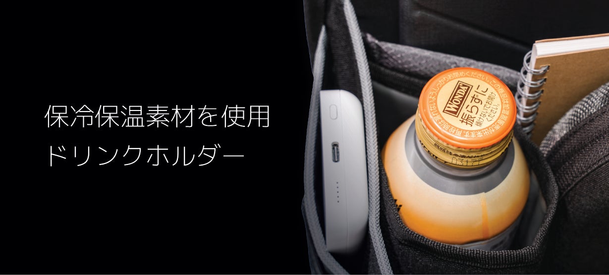 保冷・保温機能付きのドリンクホルダーは、ペットボトルやコンビニコーヒーがすっぽり入るサイズに設計しました。