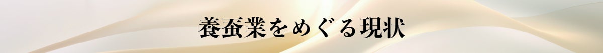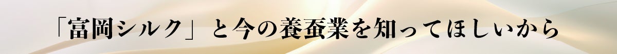 日本人ならではの感性と共に育まれてきた日本の絹産業は、養蚕農家の高齢化や、安価な外国産生糸の需要に圧され、衰退の一途を辿り、現在は“空前の灯”へと化しています。“日本のシルクは富岡で守り抜く”との熱い決意をもち、弊社は富岡製糸場のある富岡市において、地元の養蚕業を次世代へ継承することを目的に日々活動しています。富岡の養蚕農家が丹精込めて愛しみ育てた繭。そこから始まる“シルクストーリー”は、それぞれの作り手の想いがつながる貴重な絹製品へと商品化され、消費者の皆様の暮らしを彩るシーンへと繋がります。歴史と伝統と共に育まれた養蚕への精神は、今でもなお富岡市内の養蚕農家へと受け継がれています。