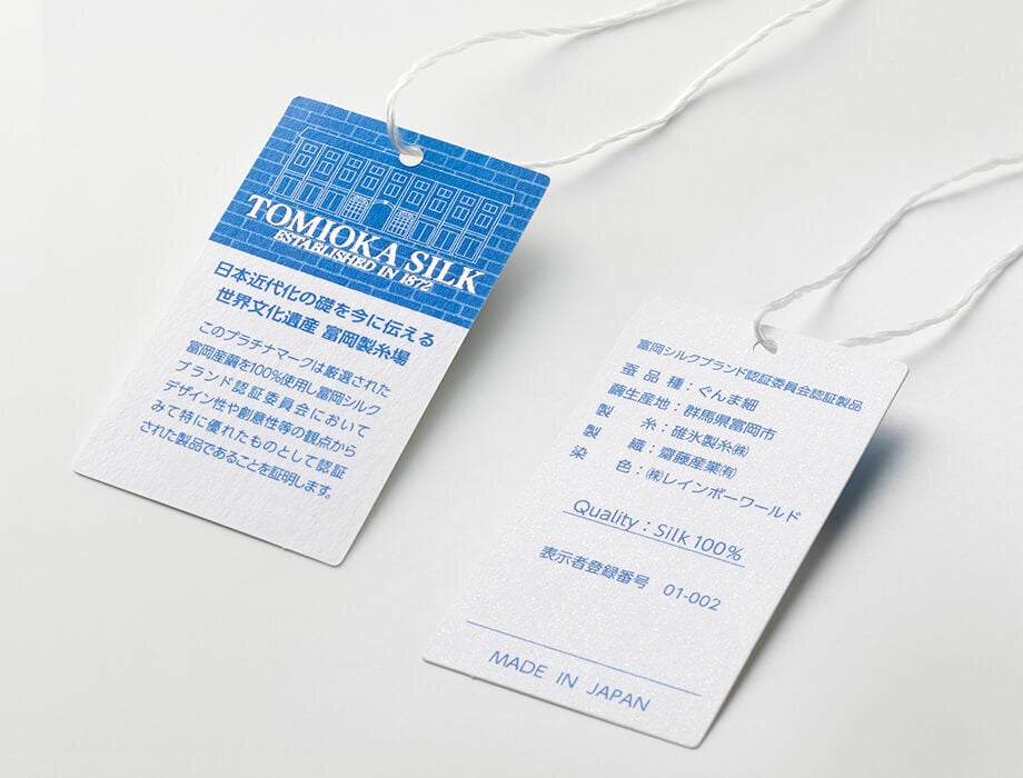 「富岡シルク」とは以下の3つの条件を満たしたもの。そして申請により「一般社団法人富岡シルク推進機構」が認めた製品には富岡シルクを使用した純国産絹製品の証である富岡シルクマークが付けられます。