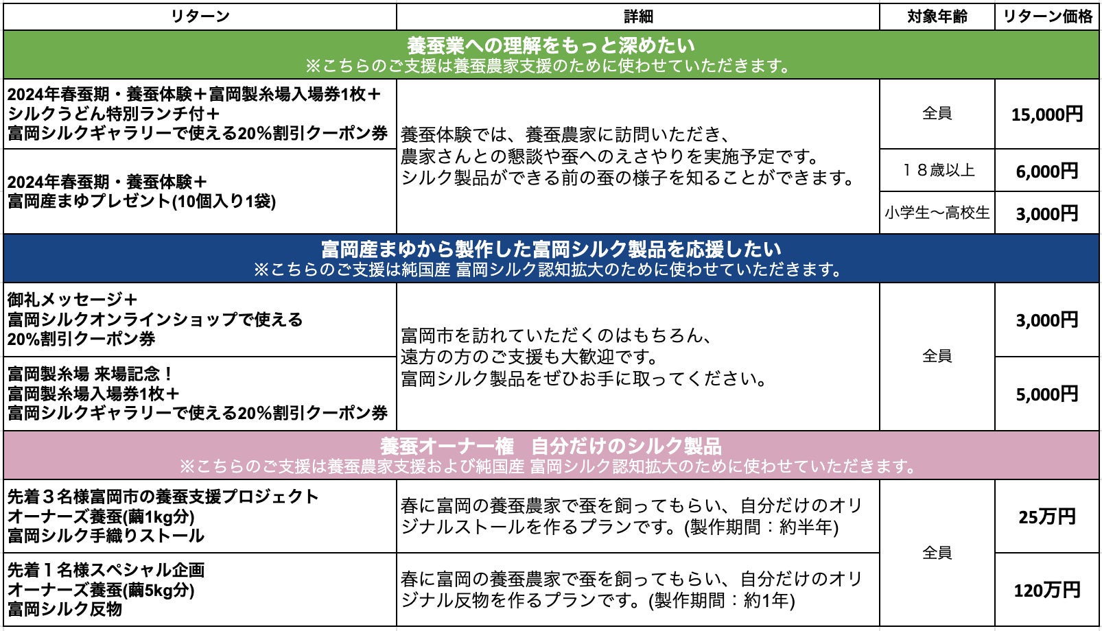 クラウドファンディングで募った資金は、「富岡シルク」を次世代へ継承するため、リターン品発送、PR費用や養蚕農家さん支援に活用します。