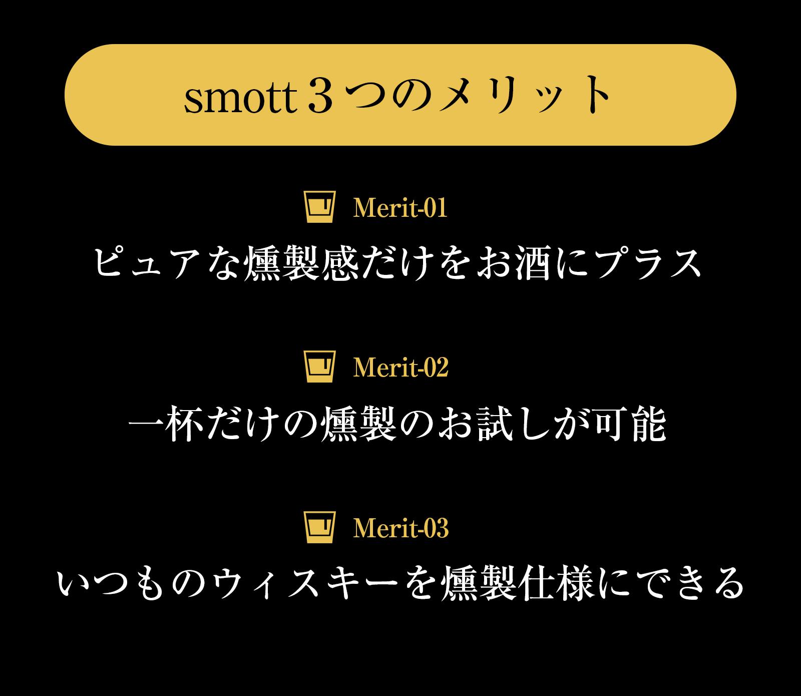燻製ウイスキーをもっと身近に感じることはできないか。その想いを叶えるために、私たちが開発したのが『smott(スモット)』です。
