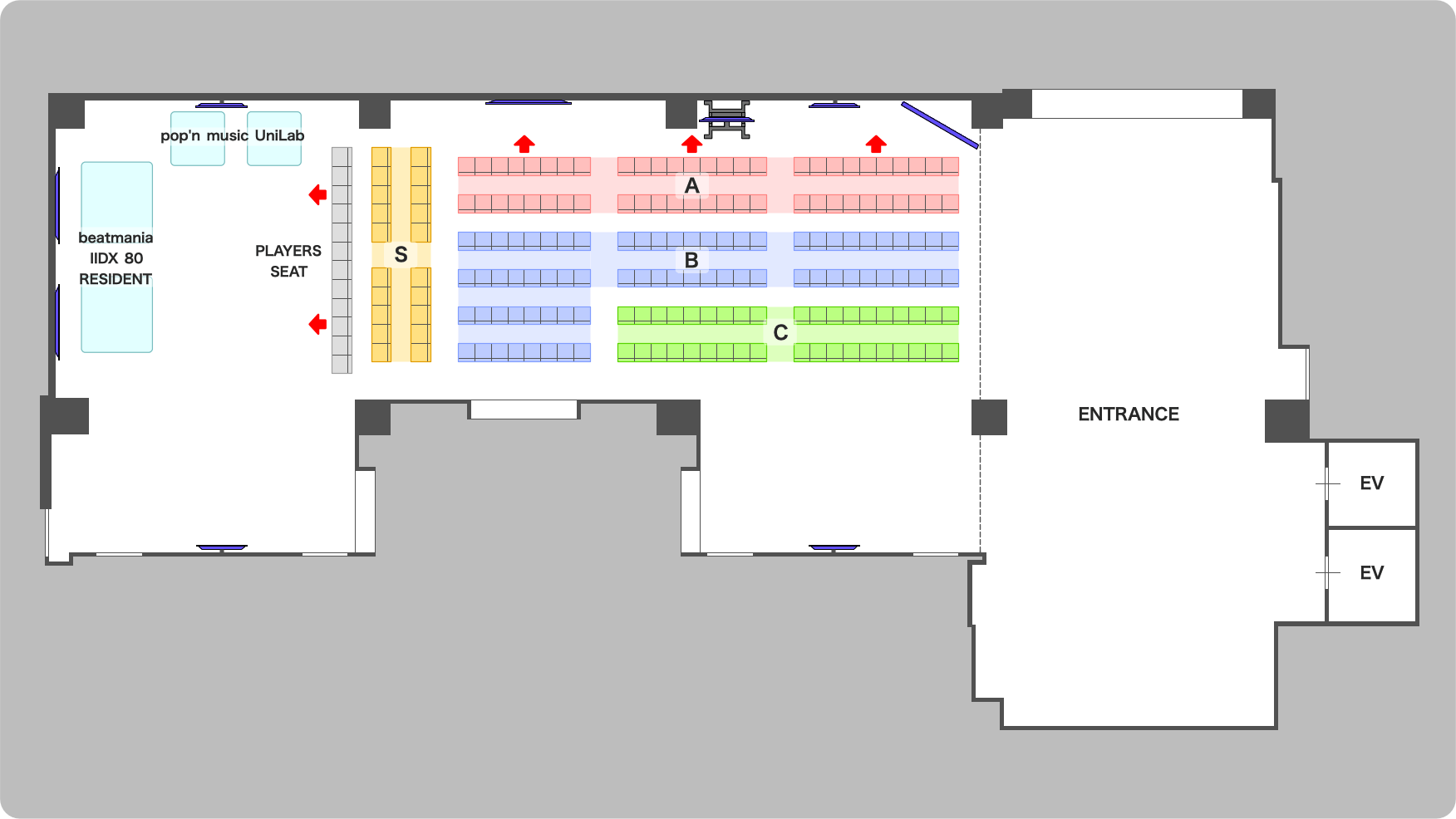 ご自身のご希望のエリアを座席表を参考に選択したください。