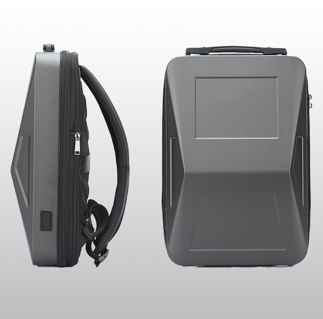 A. 硬質な素材で作られた外装のバックパックは、他にもあります。いわゆるハードシェルで知名度の高い某リュックは、その外装にABS樹脂を使っています。これも強化プラスチックであり似たように見えますが、比較してみると耐衝撃性・耐熱性・難燃性ではポリカーボネート樹脂の方がまさっていると言われています。やはり防弾ガラス、鎮圧用のシールド(楯)、ジェット戦闘機のキャノピーなど、命を守る過酷な製品に使用されているだけありますね。