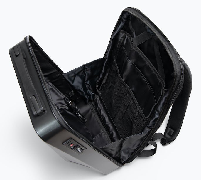 外装は、1枚のポリカーボネート樹脂から真空成型。仕事や旅行にぴったりな機能とサイズ。万全の盗難対策と軽量設計。