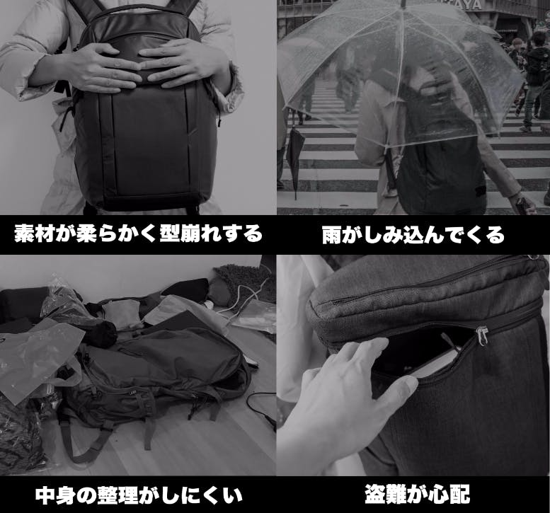 CYBER PACKには、こんな困り事を解決して、快適な使い心地にしてくれるいろいろな特徴が備わっています。
