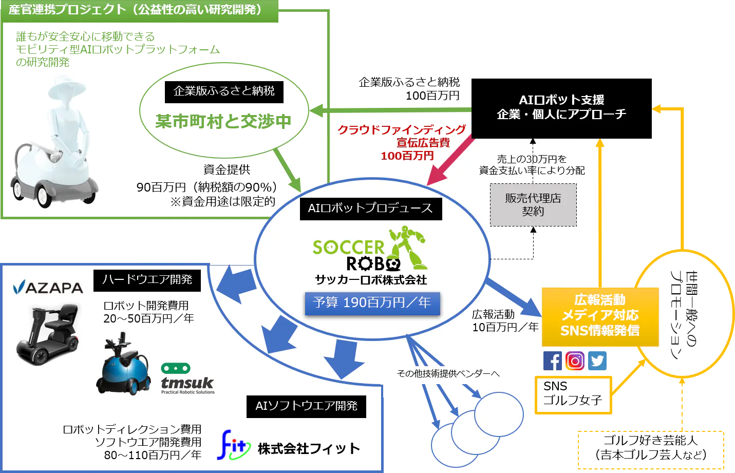 現在、某市による企業版ふるさと納税の利活用に当社のこの開発プロジェクトが採択される見込みで年間1億円の開発資金調達の目処が立っています。この資金は、開発資金としての使える用途が決まっており主に、ハードウエア・ソフトウエアの開発資金でなければいけません。また、資金提供までに半年以上時間を要します。