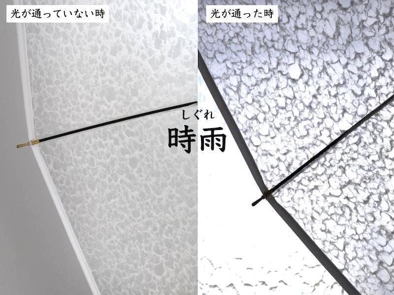 和紙の傘を作りたいと考えた時に、和紙を通した時の光の美しさや和紙の魅力を知ってもらいたいというのもありましたが、もうひとつ、少し憂うつになりがちな雨の日に、うっすらでも和紙を通る光の心地良さを感じてもらうことで、おおげさかもしれませんが、どこかの誰かの心に少しでも優しく寄り添うことができたら、こんなに嬉しいことはありません。