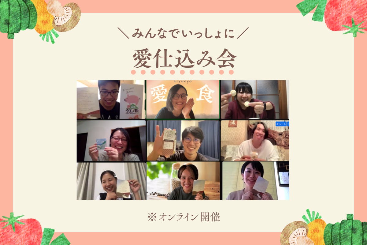 事前に一食分を詰め合わせたアソートボックスであるaiyueyoBOXをご自宅にお届け。当日は参加者をオンラインで繋ぎ、みんなで一緒に食事を楽しみます。生産者さんの想いを聴きながら食事をすることで、最高の愛食体験ができる内容になっています。フードに込められたストーリーを聴きながら、集まった仲間と一緒に同じ食事をいただくと、食事の時間が愛おしいものになること間違いなしです!