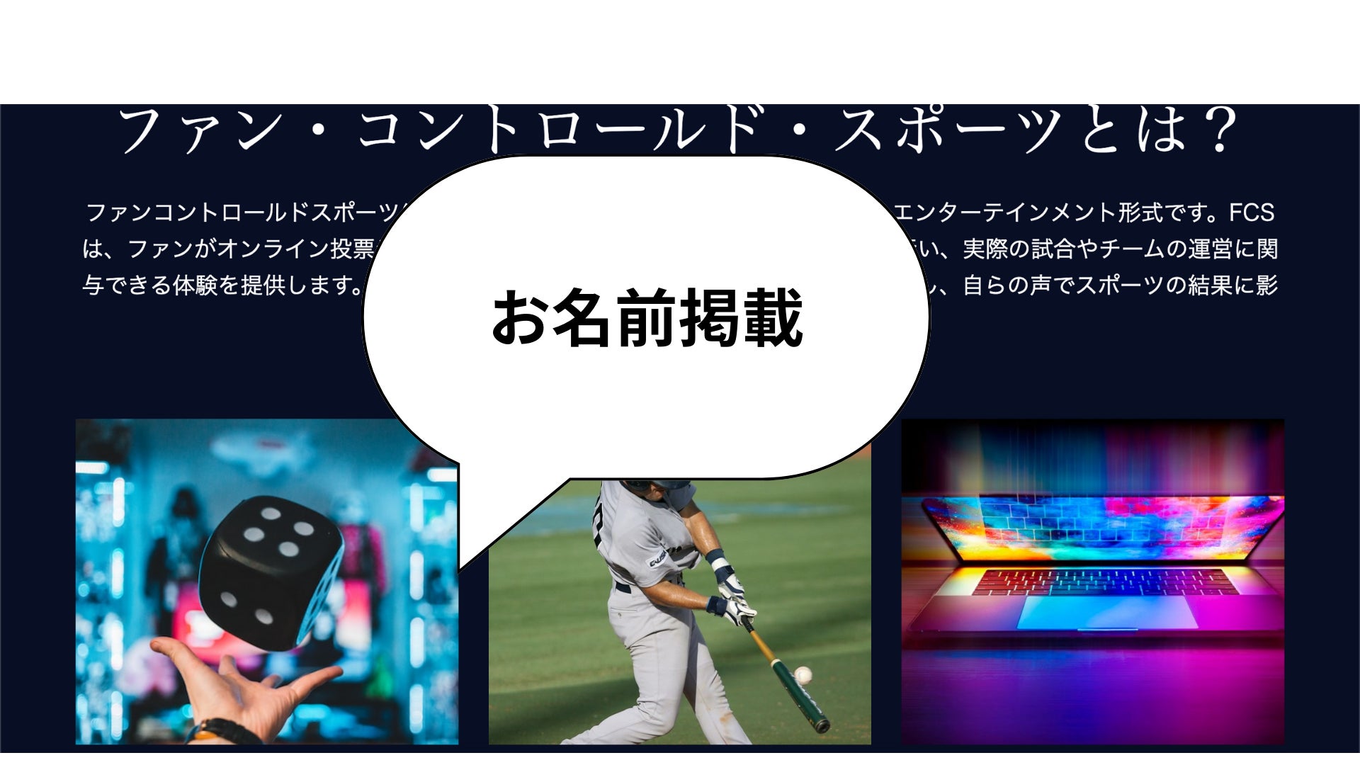 「ファン主導のスポーツ革新」 - ファン主導のスポーツ革新を目指し、ファンが試合に直接影響を与える体験を提供。