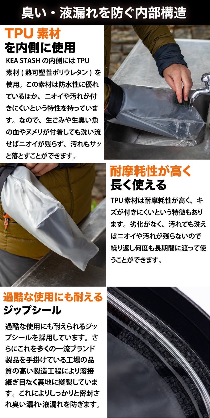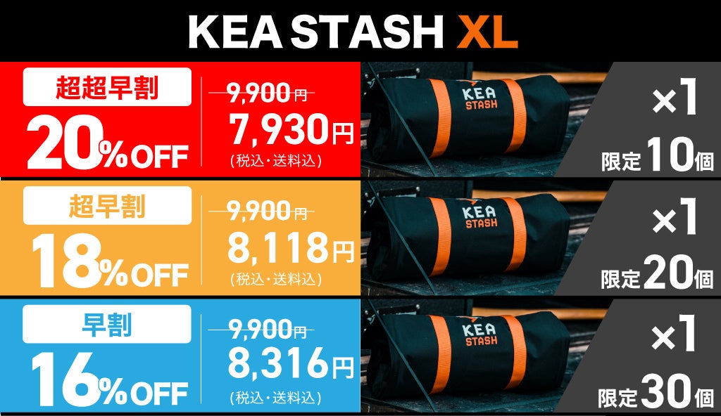 A.KEA STASH GOが約170g、KEA STASH XLが役340gとなっており軽量設計になっております。