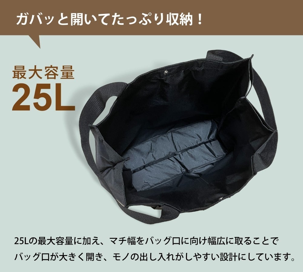 このバッグひとつあれば、「日常のお買い物」「毎日持ち歩くサブバッグ」「旅先のお供」として、きっと皆さまのお役に立つと思います。特に重くなりがちなスーパー等でのお買い物には最適なバッグです。