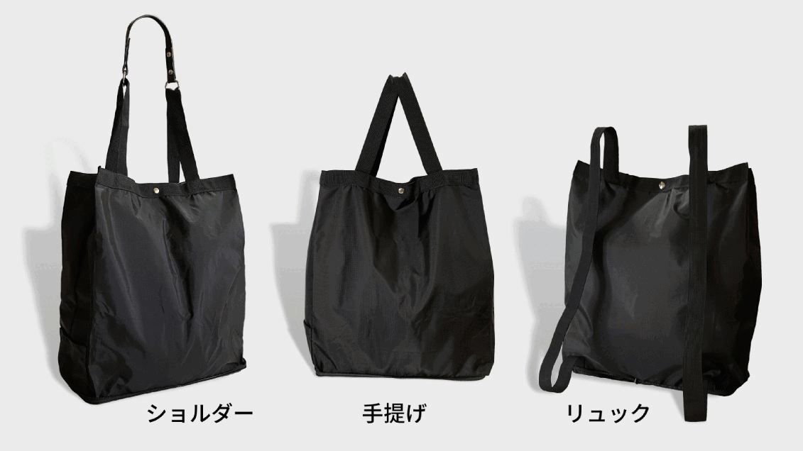 基本は、コンパクトに持ち運べるポケッタブルタイプで、用途に合わせ「手提げ」「肩掛けショルダー」「リュック」として瞬時にアレンジが可能な3Wayモデルであることをベースに開発をスタートしました。