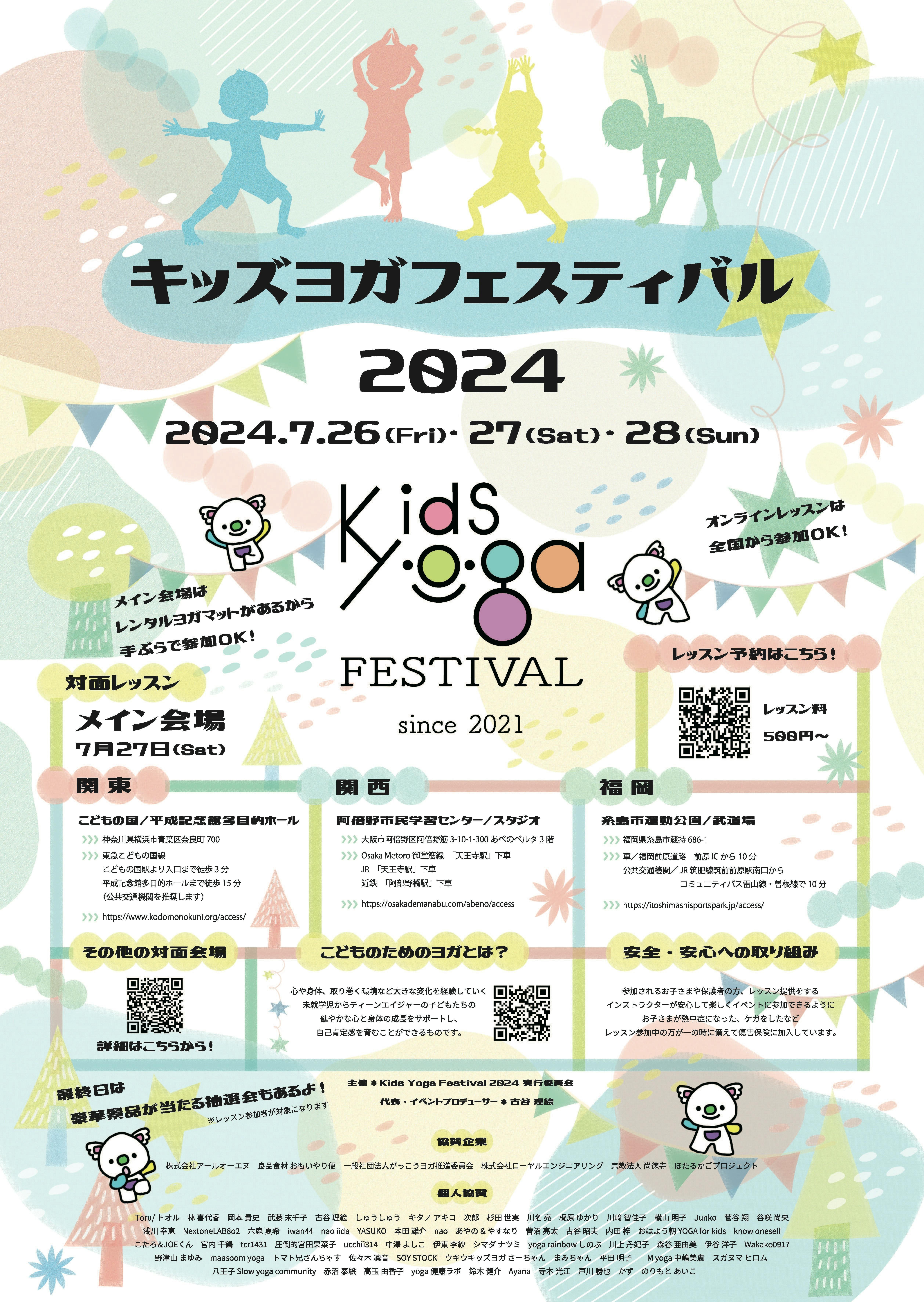 7月26日 27日 28日 関東、関西、九州のメイン会場3か所と全国各地の会場及びオンラインでKids Yoga Festival開催予定!