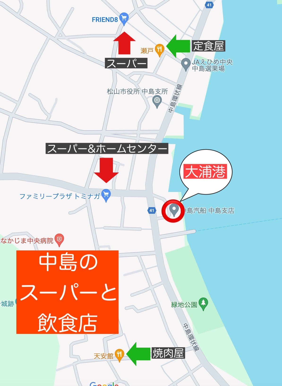 スーパーも近くにあることから、島民が集まる地域でもあるので、飲食店として利用していただくには好立地だと思います。