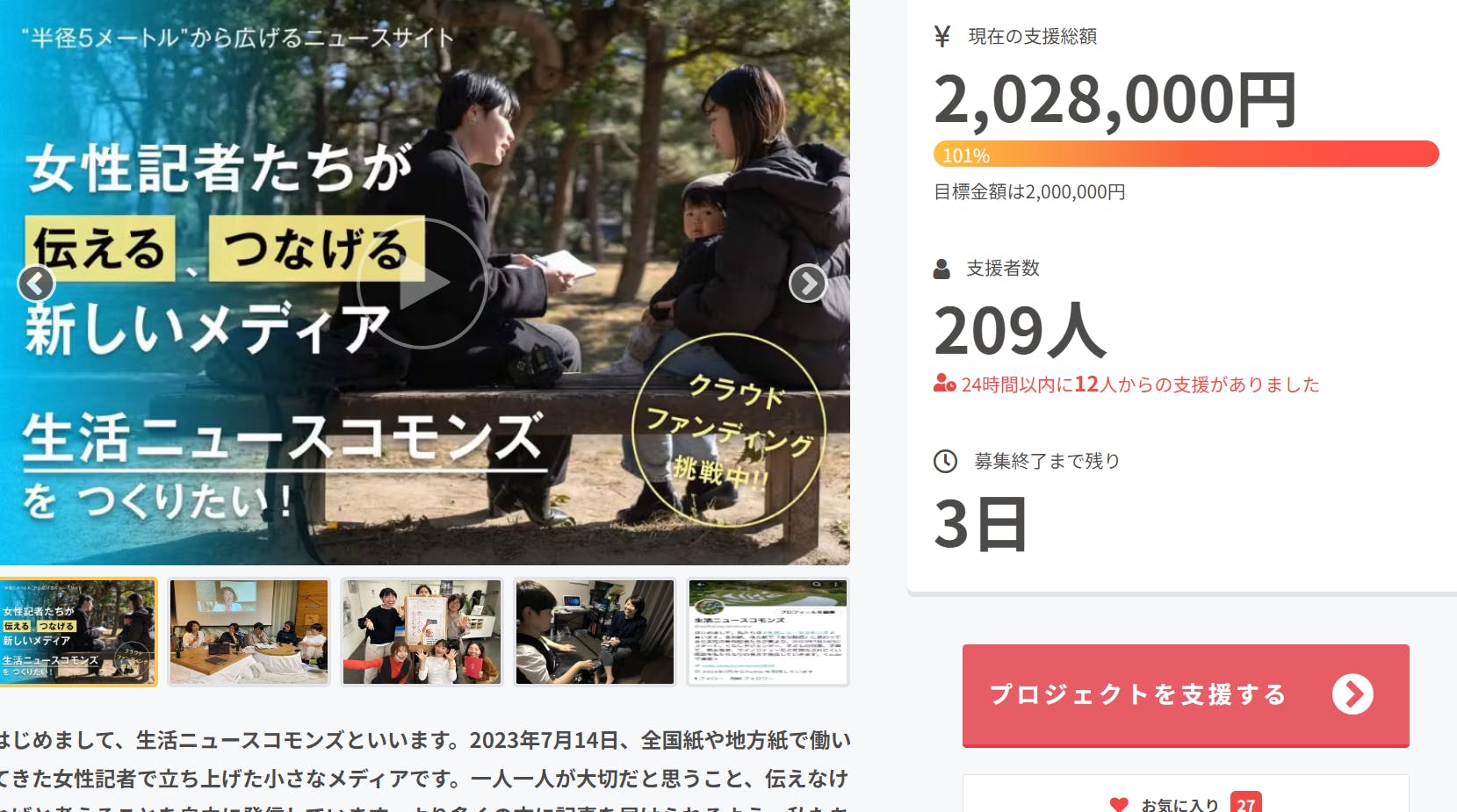 生活ニュースコモンズのウェブサイト立ち上げに向け、私たちはこちらのクラウドファンディングを通じて、皆さまにご支援をお願いしたいと考えております。目標額は200万円です。