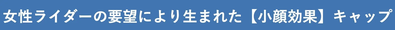 キャップを被る女性が抱く「顔が大きく見えるのは嫌だな」「被りが浅くて嫌だな」「髪が押し潰されるのが嫌だな」等のキャップに対する不満を解消する事を目標として、皆様(女性ライダーを多く含む)よりご要望を頂き、それを具現化する為に帽子工場さんと共に新しいキャップを開発しました。それがこのプロジェクトの【小顔効果】を徹底追求したキャップです。