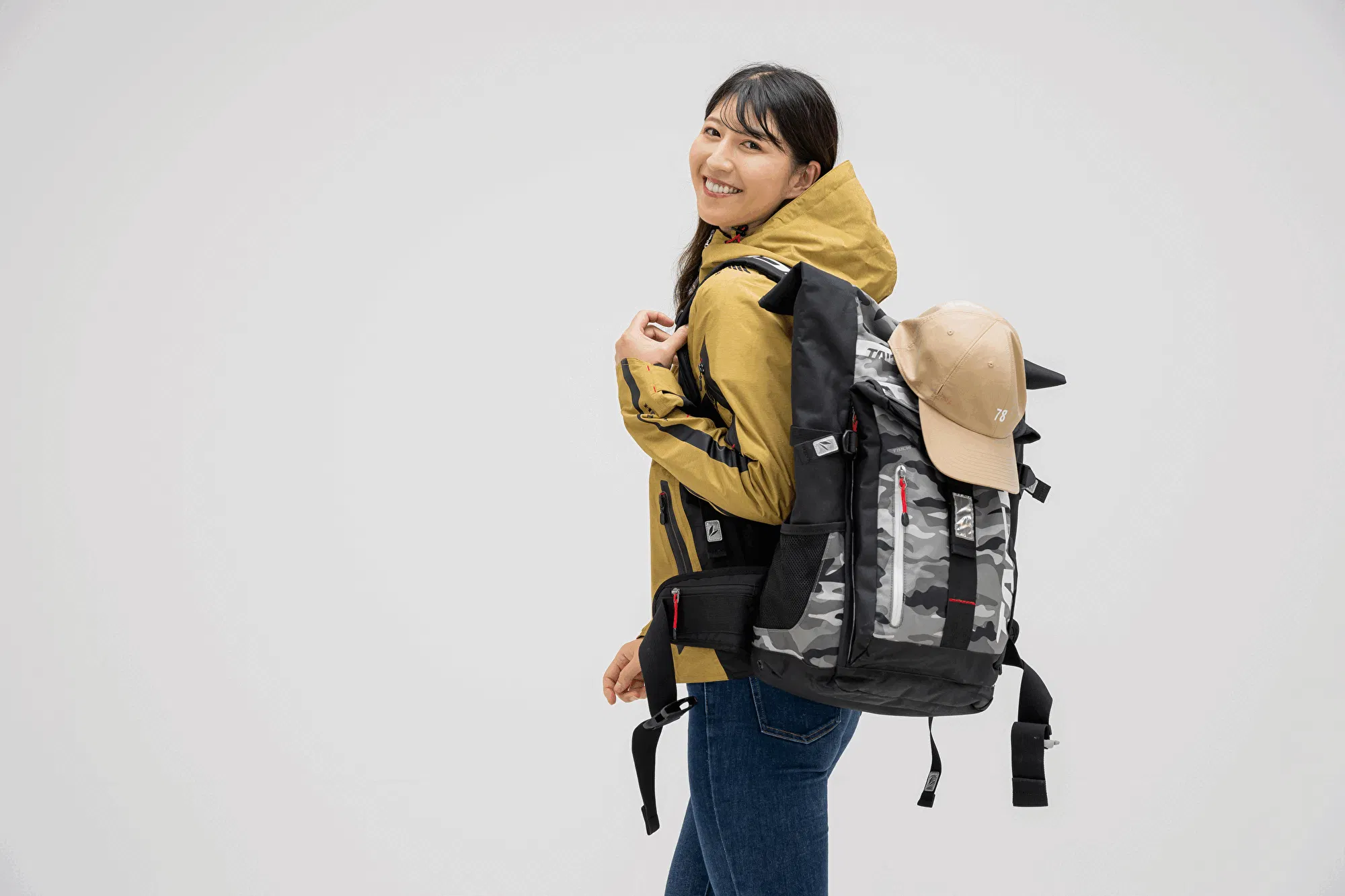 キャップを脱いだ時にキャップの形崩れが気になったり収納場所がない場合は、リュックやバッグ、パンツのベルトループに引っ掛けると便利です。キャップを被る女性ライダーにはアメリカンアジャスタの便利さを理解して頂けると思います。