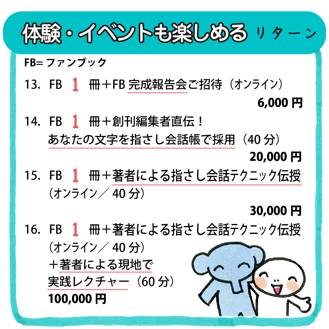 ファンブックには、「ファンに向けてつくる」というより、「ファンと一緒につくる」という意味を込めました。 それが完成する頃、指さし会話帳が持つ価値が見えて、新しい時代に私たちにできることが見えているはず。