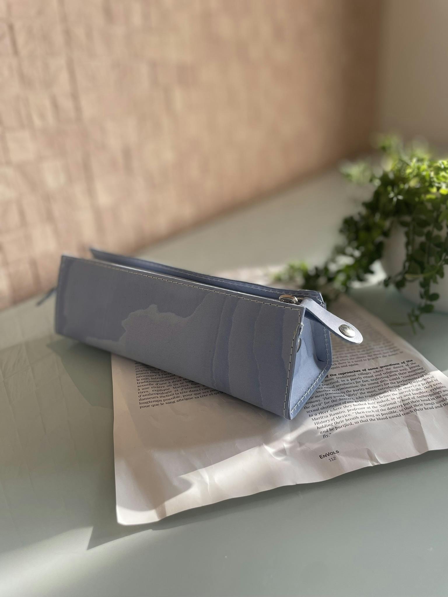 カバンなどがコンパクトになっている現代ではスマホだけを入れるケース需要が高いのではないかと考え制作しました。スマホの出し入れしやすさを重視して寸法を大きめにとり、おでかけの際に必要なキーケース、ハンカチ、リップなども一緒に入れられるサイズ感にしています。さらにプロダクトの強度を上げるためパーツの一部に国産革で補強をしています。裏面には交通系カードなどを収納できるポケットが付いてお出かけの際などにサッと取り出しできる機能があります。