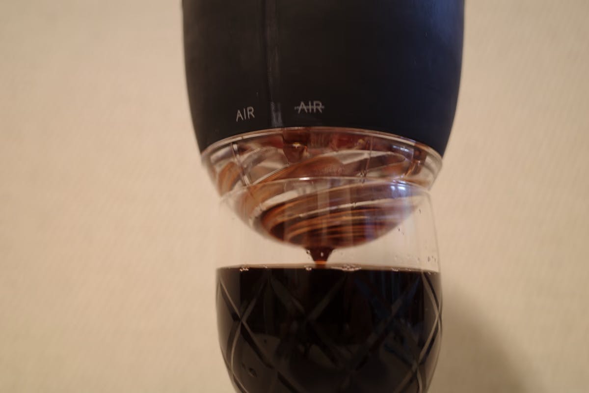 【Wine Purifier】はエアレーターを搭載し、亜硫酸を除去したワインがらせん状の溝を通る過程で空気に触れる時間が増え、ワインの苦味成分のタンニンの酸化を早めてまろやかにし、閉じていた香りを開きます。